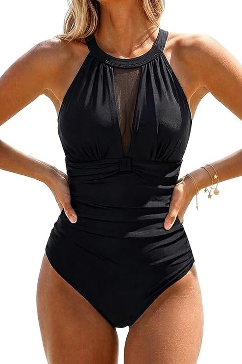 Tempt Me’s high-neck mesh suit is the strongest full-value pick here. Good Housekeeping named it a best-value choice at about $39, noted its Amazon popularity, and highlighted thousands of five-star reviews. The suit combines a high neckline with a mesh panel and plunge back, which helps it feel more stylish than a basic budget one-piece.